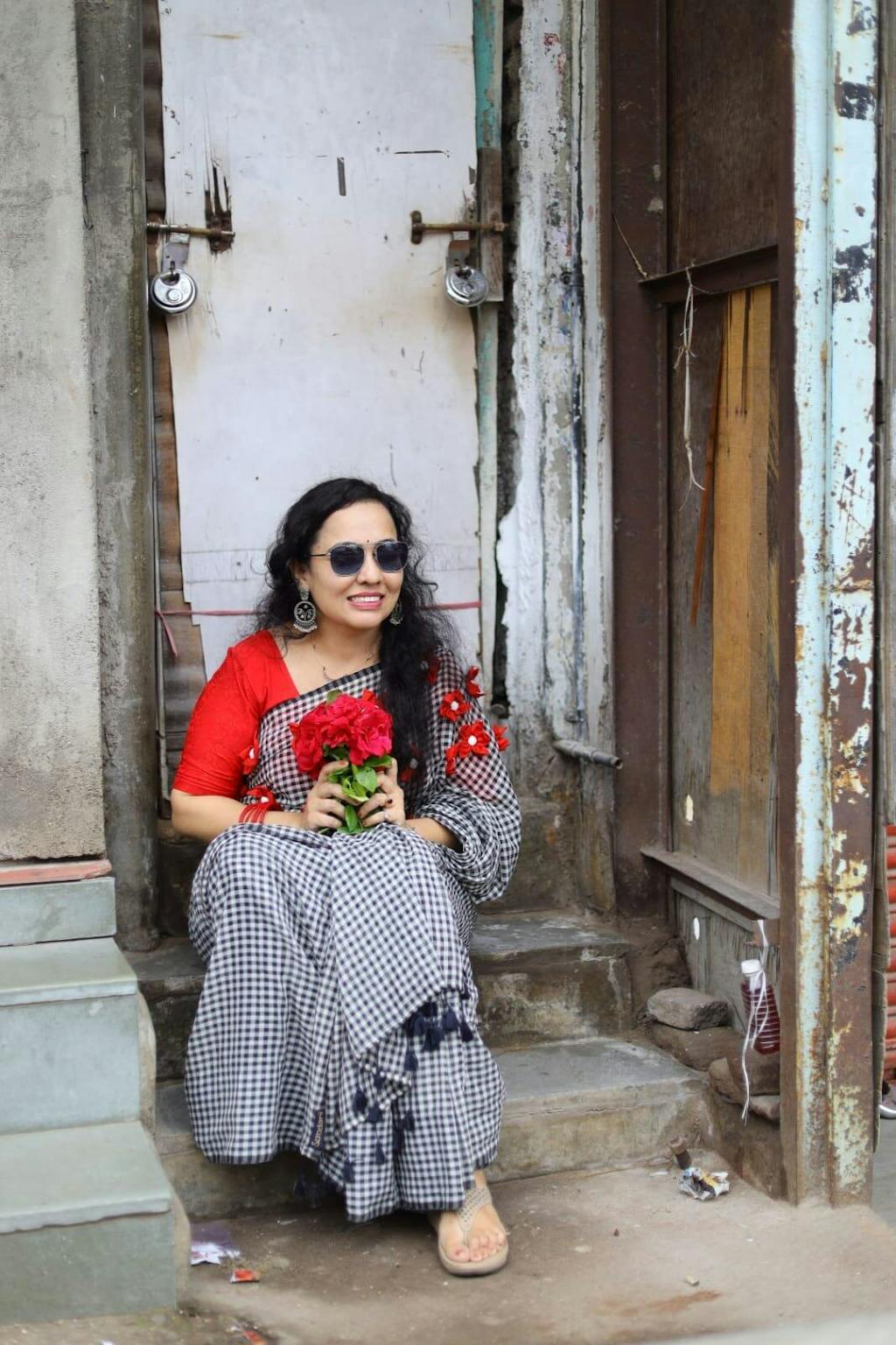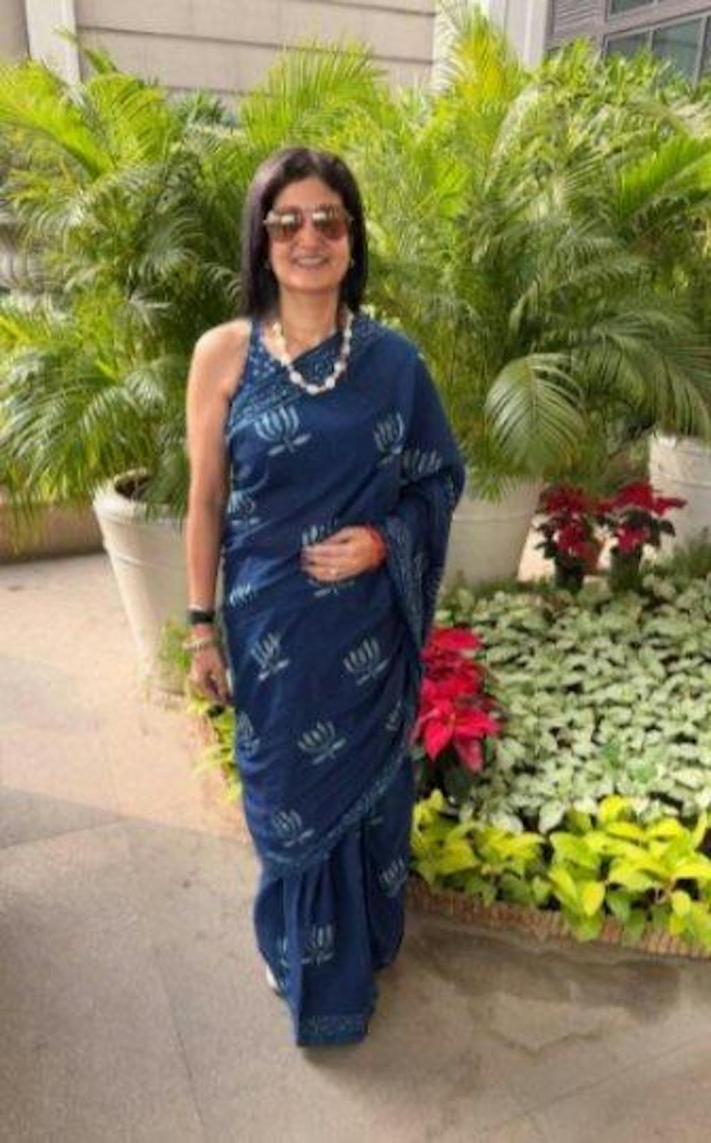 I fell in love with this beautiful blue mul indigo saree and ordered it online. Saree came well in time for my trip to Kolkata and wore it aptly on World Saree day on December 21st. I wore the saree with white keds. Saree is extremely comfortable and I sailed through the day effortlessly. Way to go Sundarii