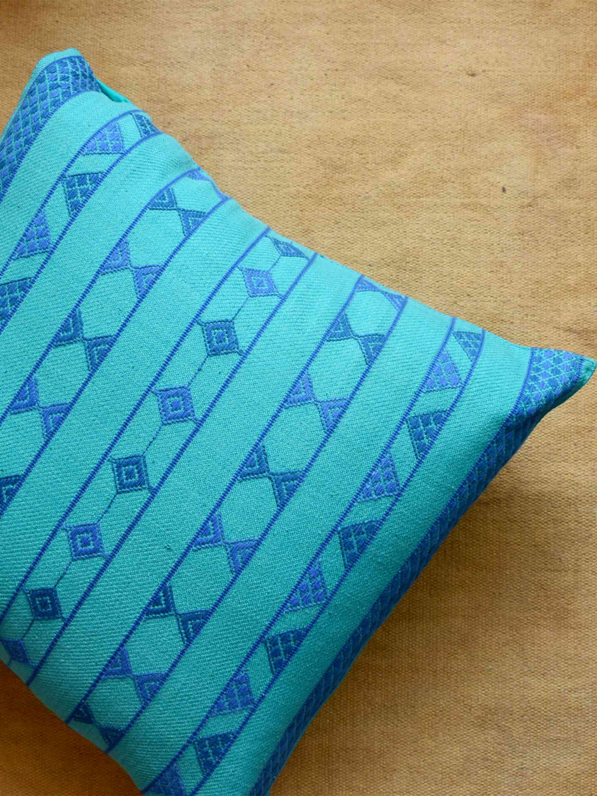 Aqua - Handloom Cotton Embroidered Cushion Cover 16x16