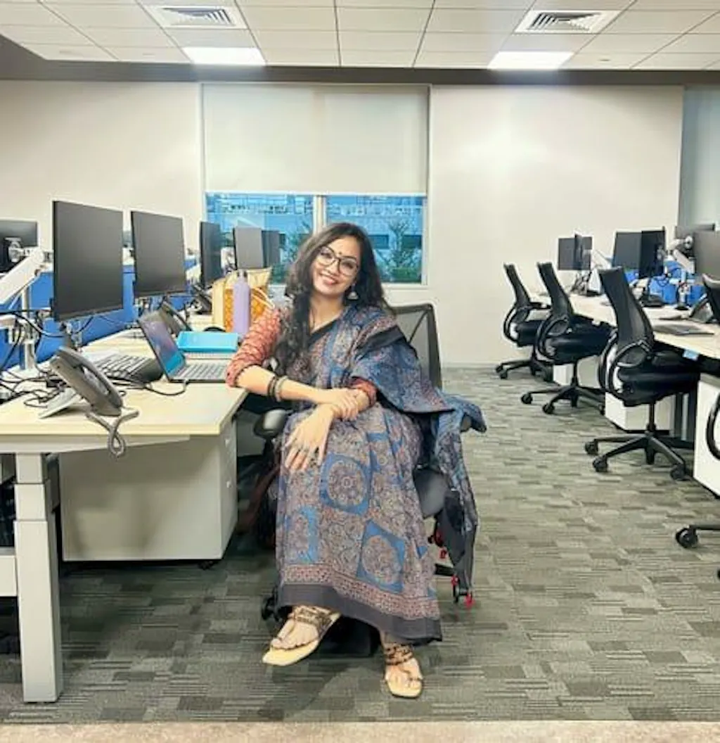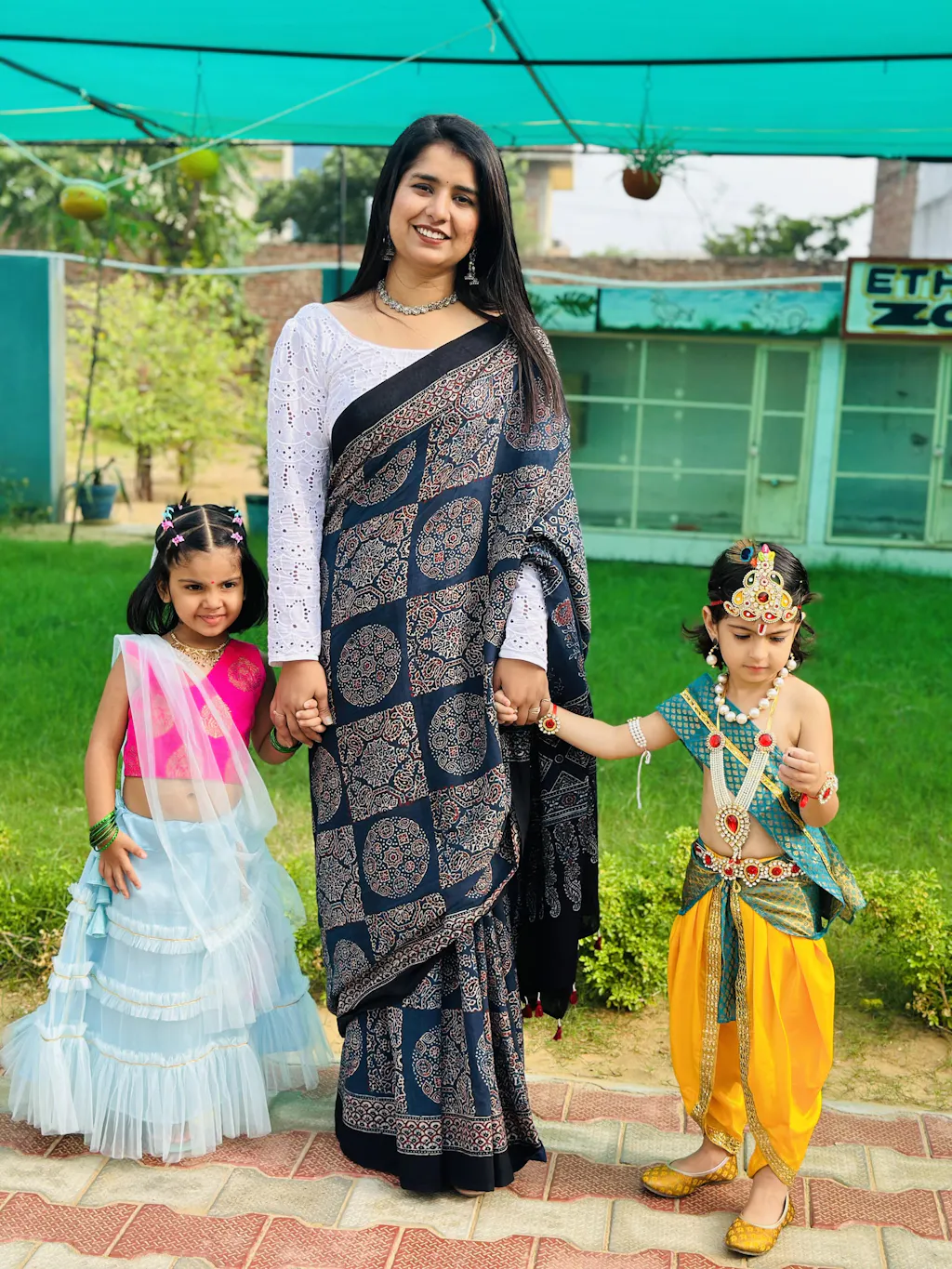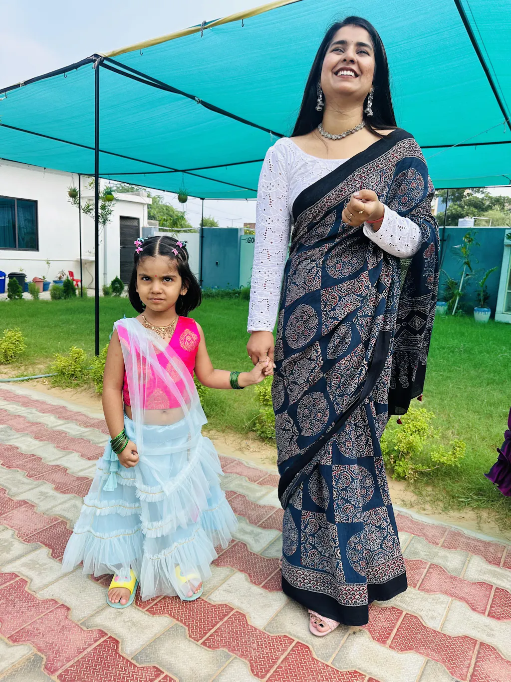 I fell in love with this beautiful blue mul indigo saree and ordered it online. Saree came well in time for my trip to Kolkata and wore it aptly on World Saree day on December 21st. I wore the saree with white keds. Saree is extremely comfortable and I sailed through the day effortlessly. Way to go Sundarii